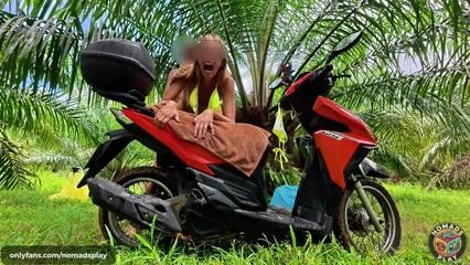 Wild Girlfriend Fuck on a Scooter & Wet Squirt in a Jungle During Rain