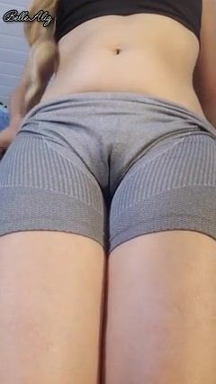 Horny girl after gym shows her big ass and pussy wetting her shorts with so much excitement and ends