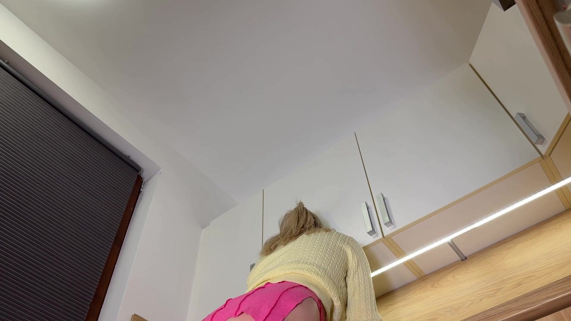 Hot super sexy long legs tight pussy college girl in a cut mini skirt to flash her panties and ass