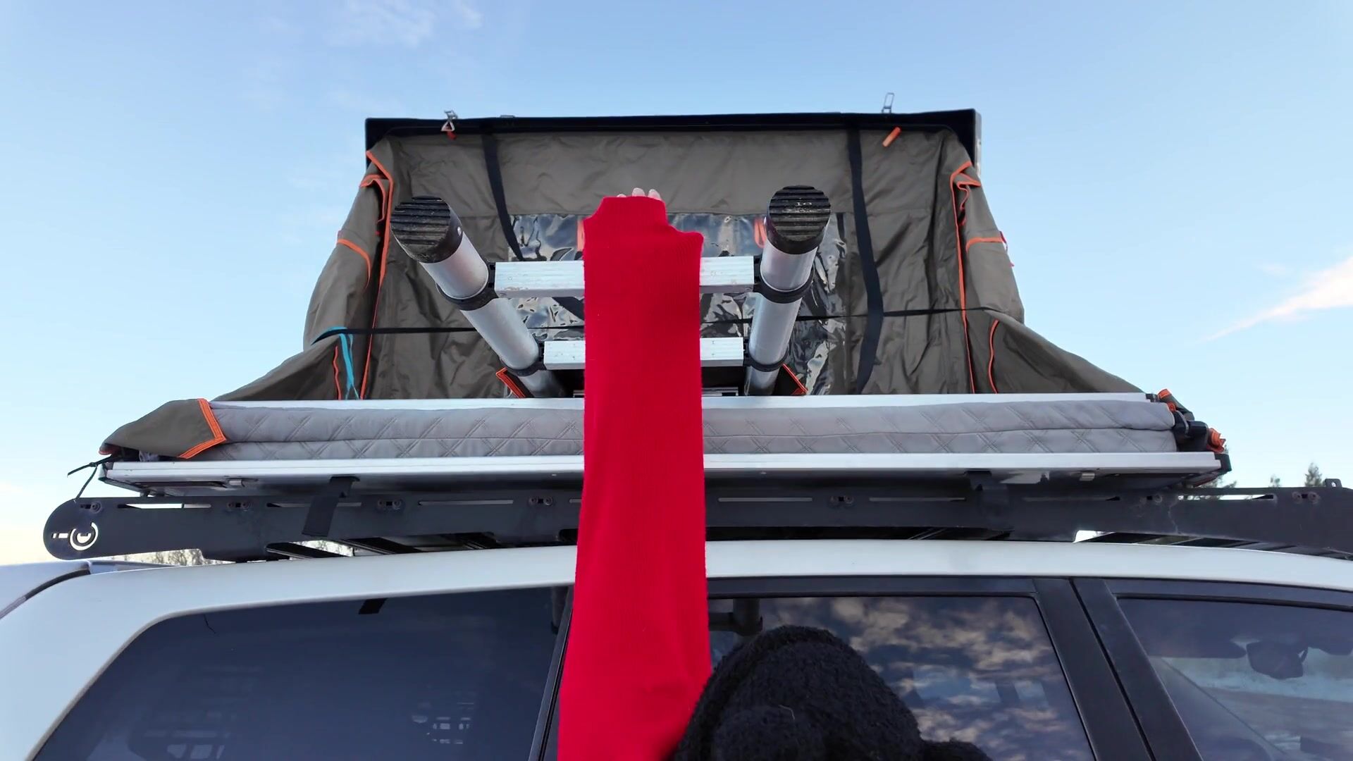 Mountain girl shows off rooftop tent set up and light up butt plug