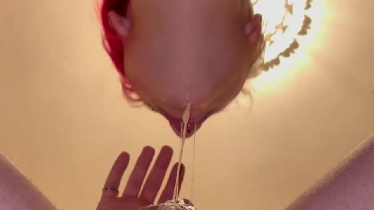Salivating Close up sloppy wet blowjob with cum in Throat