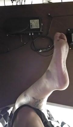 Under desk POV foot play