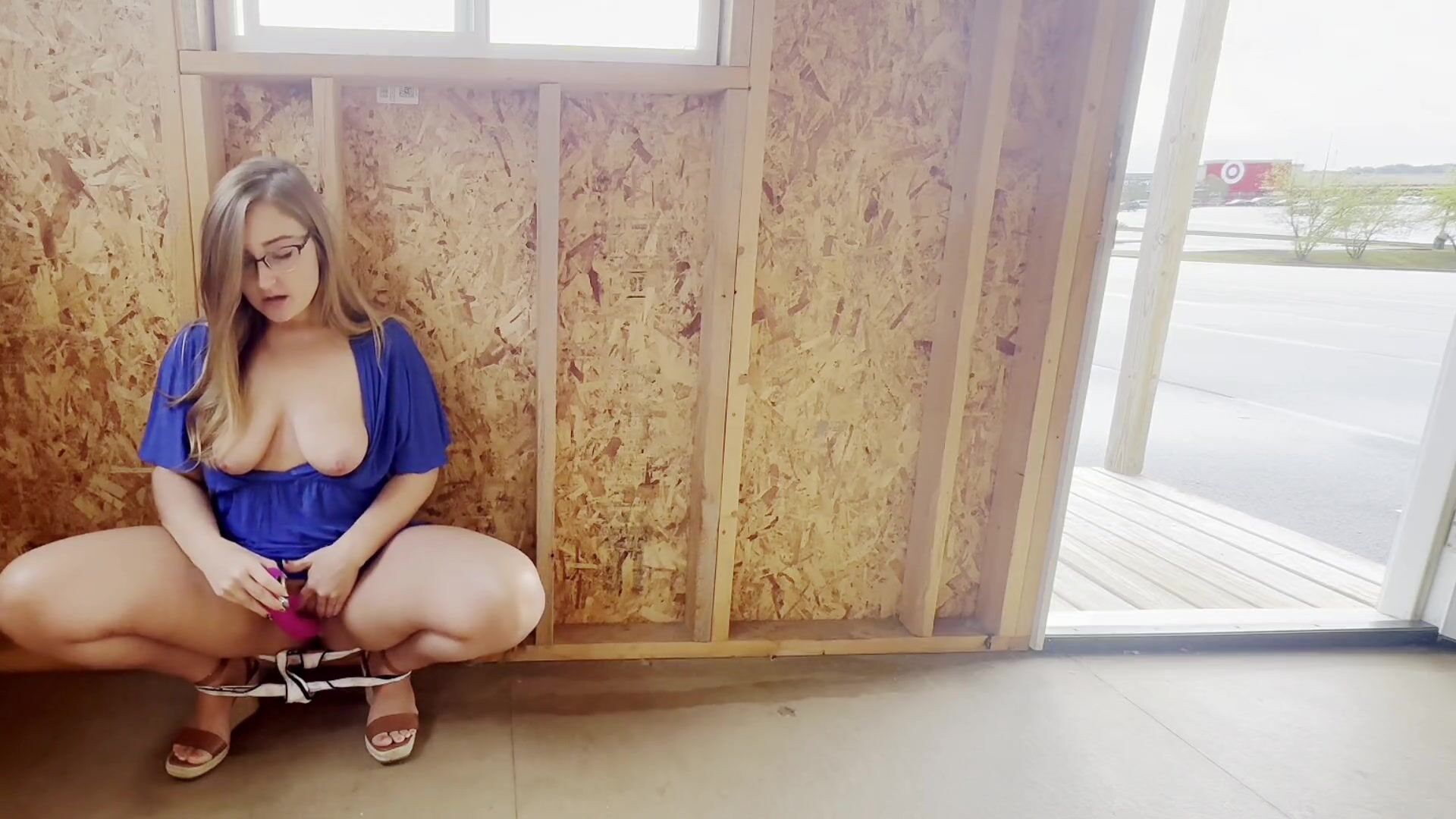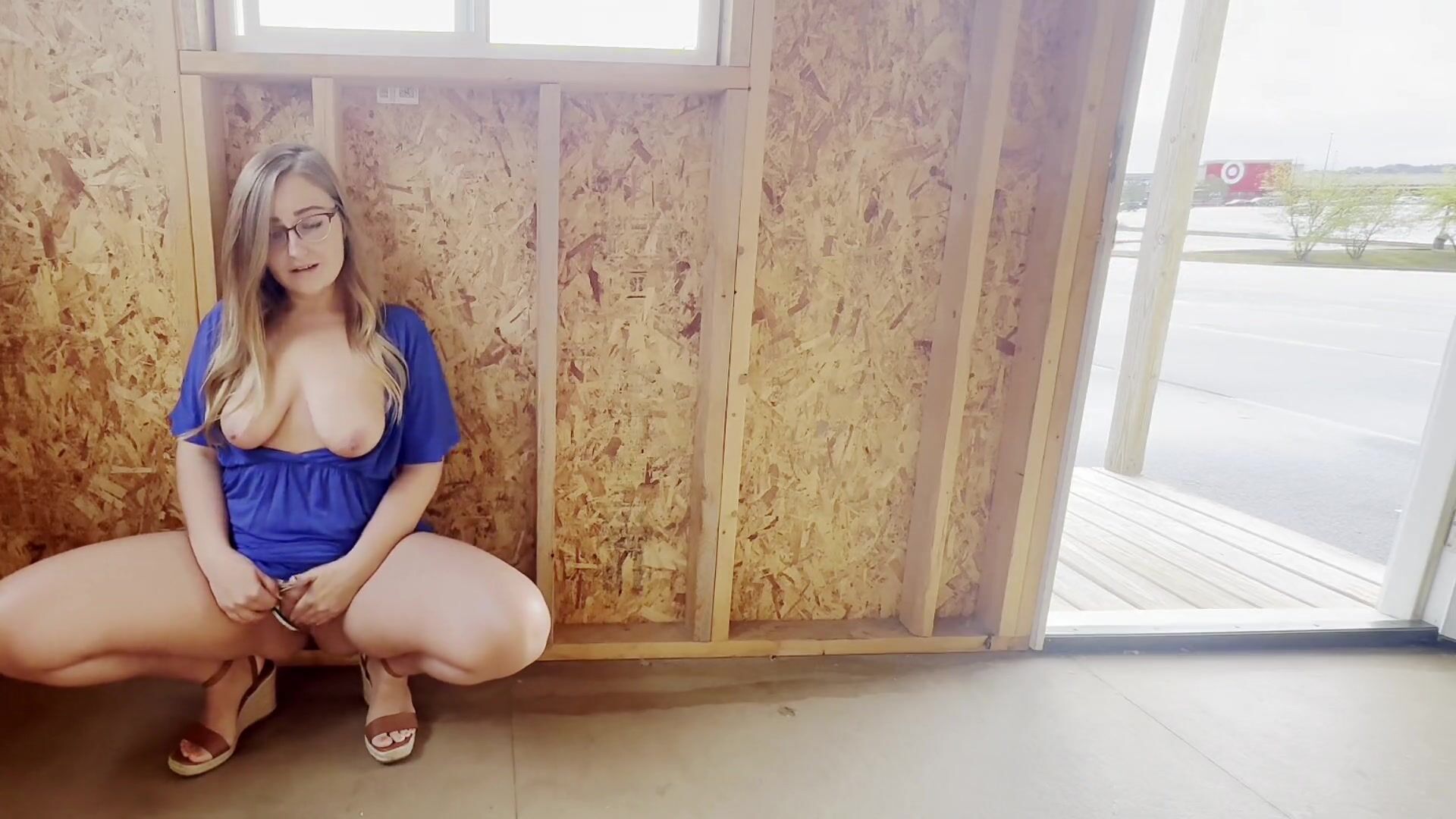 Blonde MILF with Big Tits and Glasses Enjoys Exhibitionist Masturbation and Dirty Talks