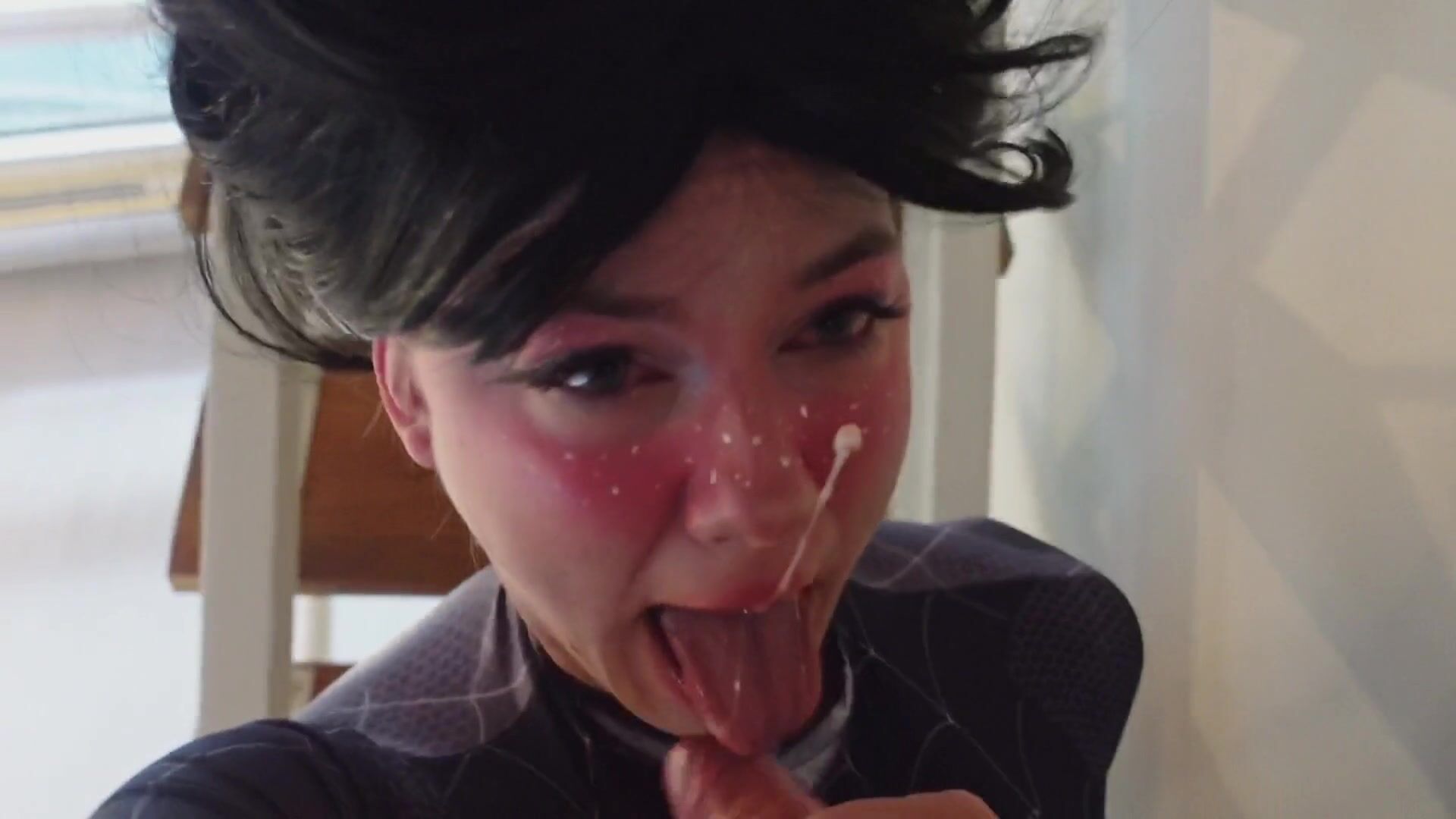 Cute Spider Girl makes me cum with her mouth upside down